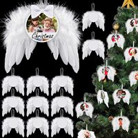 Xmas Hanging Ornament White Angel Wing Feather For Christmas Tree Decoration With Sublimation MDF Board For DIY Photo Logo